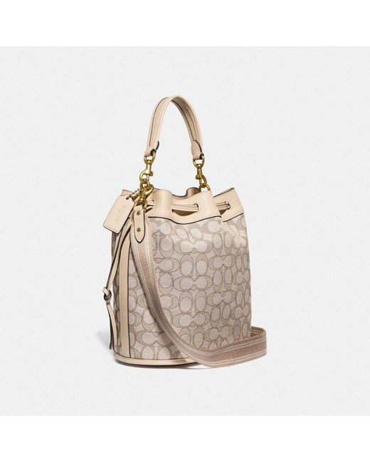 Coach Leather Field Bucket Bag In Signature Jacquard In Brass Stone Ivory Natural Lyst