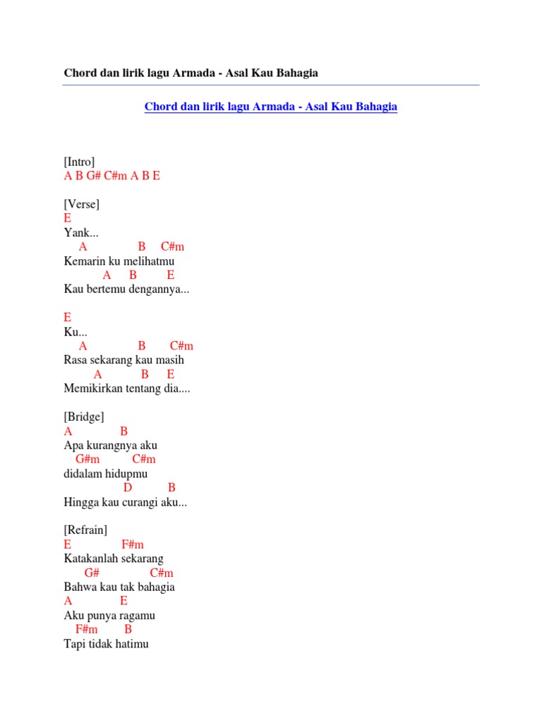Chord Dan Lirik Lagu Armada Asal Kau Bahagia Pdf